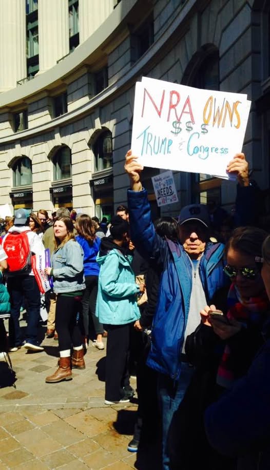 His daughter (and mine) flew home to make the Fight On poster (see above) with a photo (below) of Mike at a protest rally some eight years ago. Then we headed downtown.